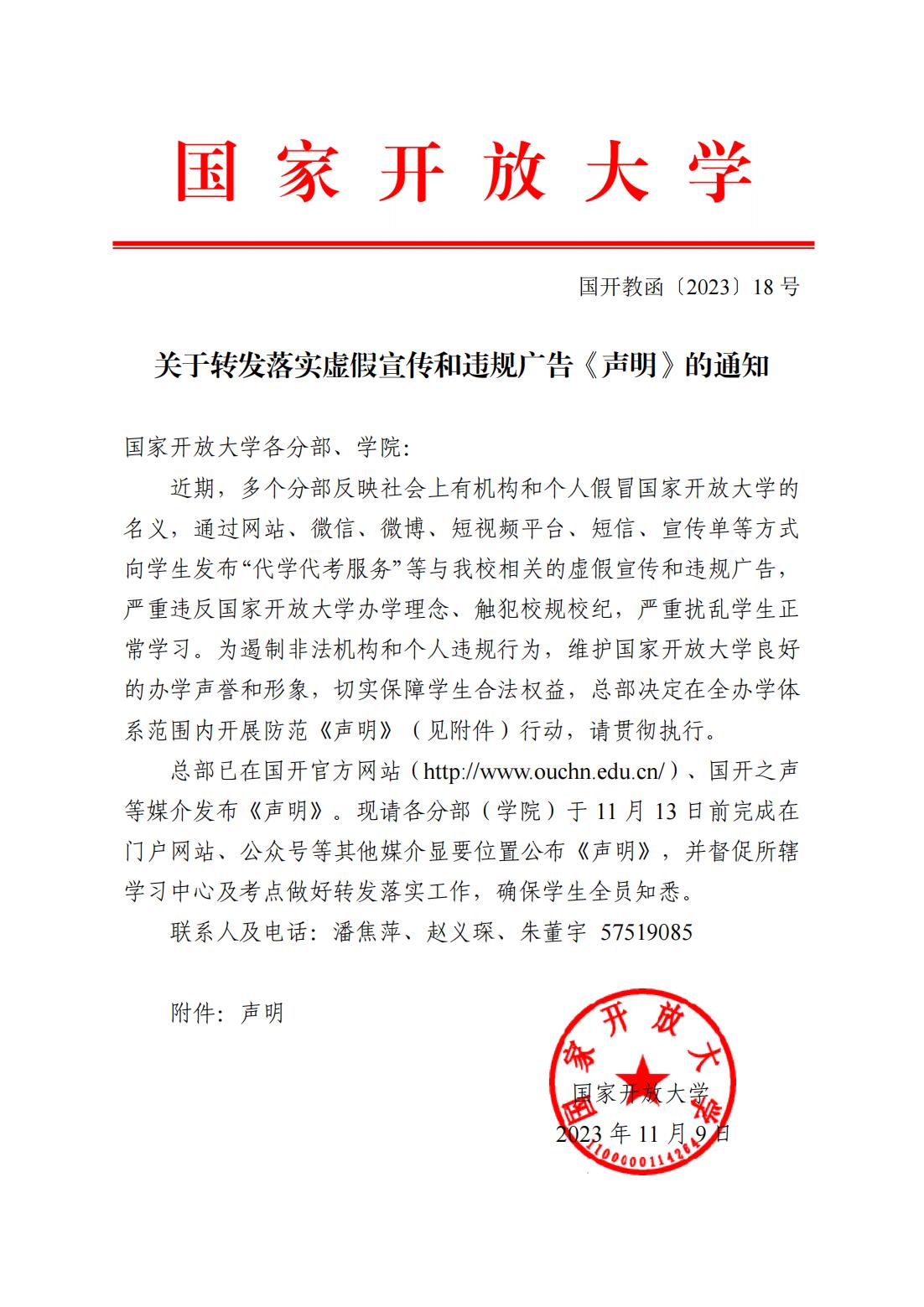 關于轉發落實虛假宣傳和違規廣告《聲明》的通知