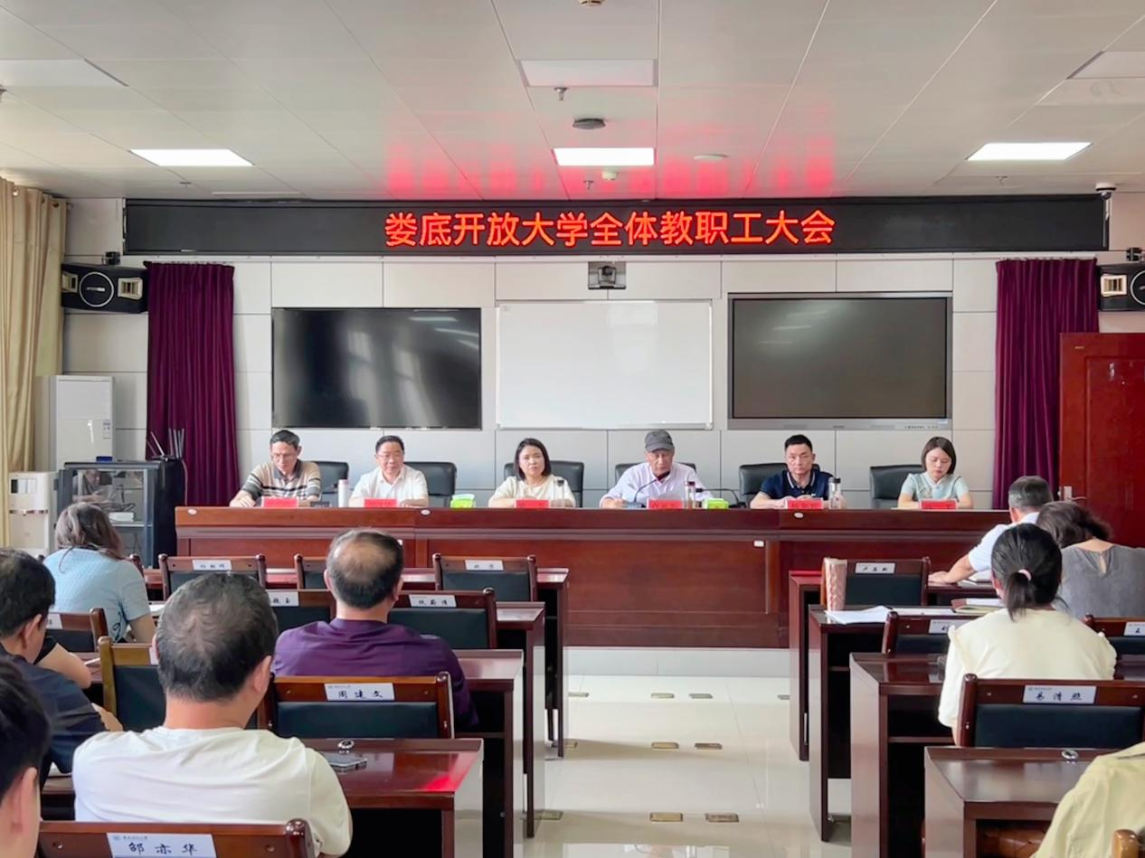 5月23日下午,婁底開放大學在四樓云教室召開教職工大會宣布新任校領導任職。黨委書記歐芳主持會議并講話,全體校領導及教職工參加會議。